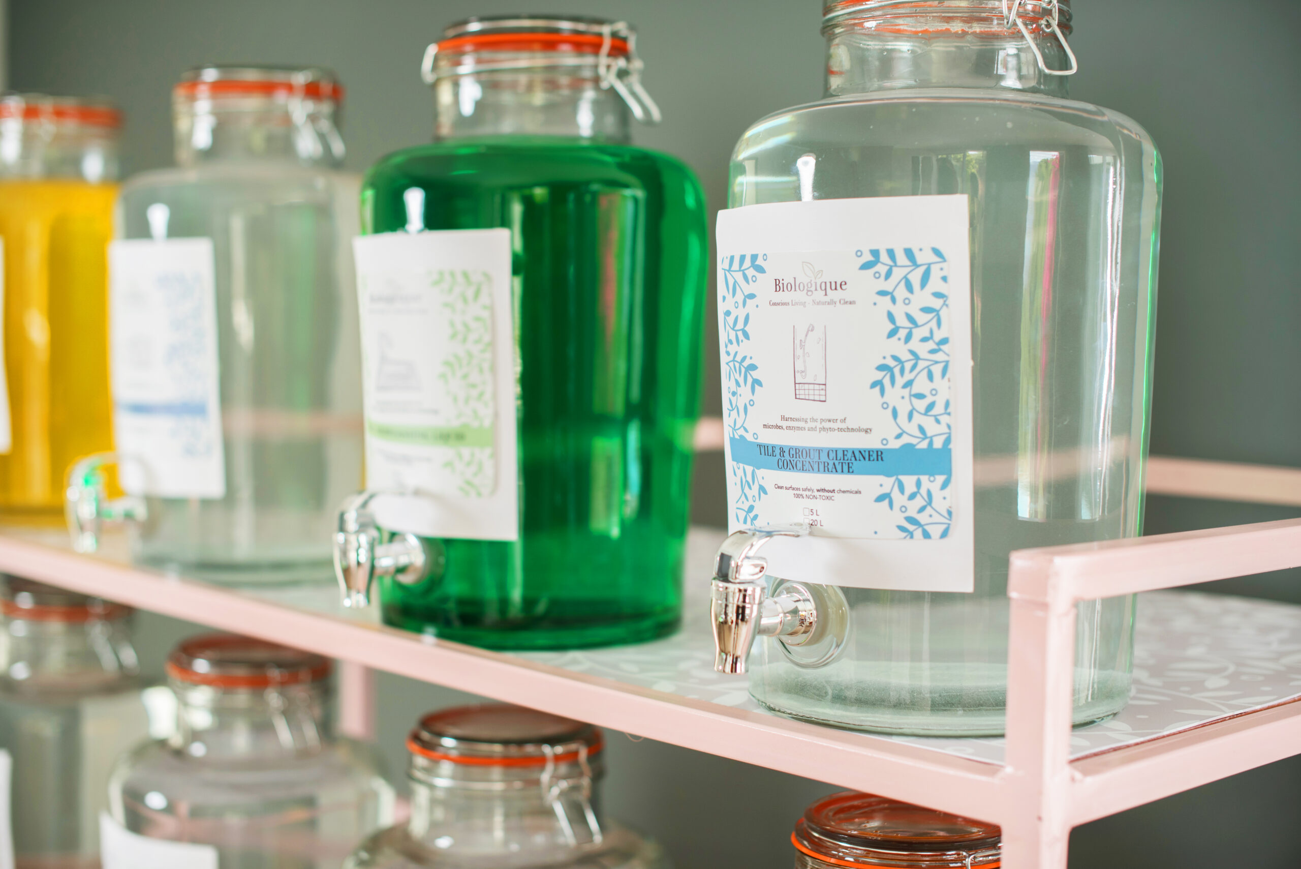 The stylishly retro refilling station is clean-cut and appealing.  It offers a zero-waste store/ plastic free store an  environmentally friendly approach. The convenience and this cost effectiveness offers guilt -free shopping with optimal results.